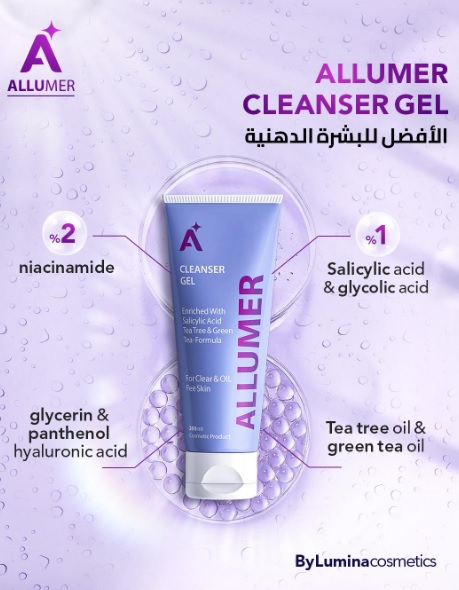 - تنظيف عميق: يعمل جل Allumer على إزالة الشوائب والزيوت الزائدة من البشرة، مما يساعد في تقليل ظهور حب الشباب.